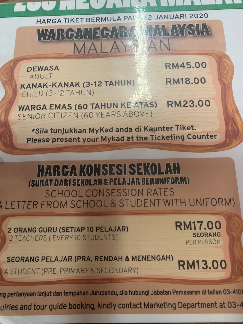 Zoo Negara Hulu Kelang 68000 Ampang Selangor Darul Ehsan Malaysia For enquiries please call. Untuk harga tiket zoo negara sekarang ini adalah Rm. Harga Tiket Zoo Negara Diskaun 10 tahun 2017.
