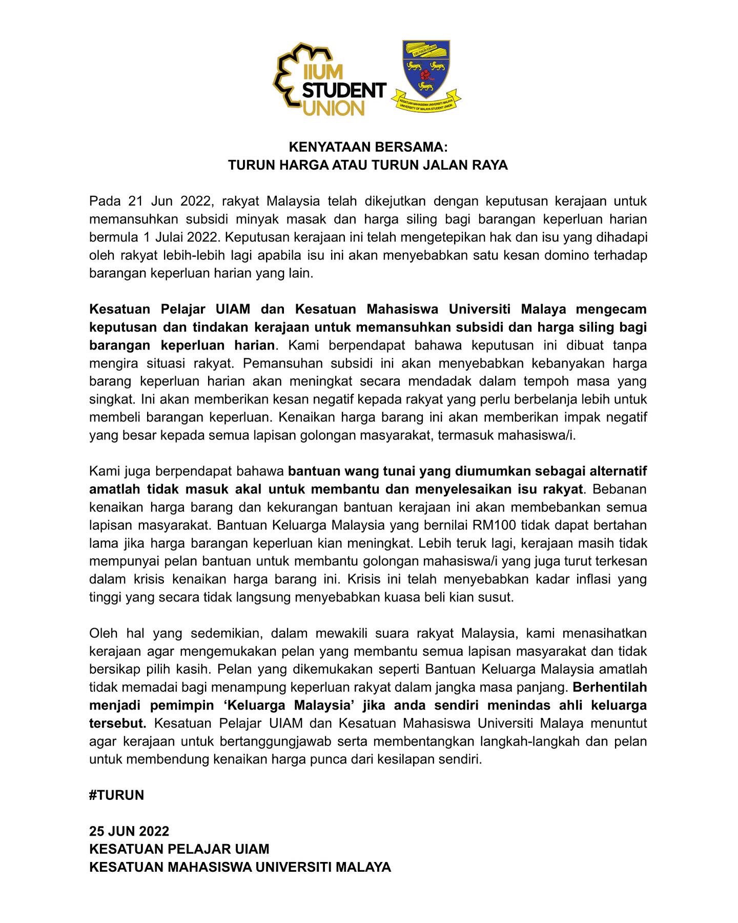 Ekonomi Rakyat On Twitter Kesatuan Pelajar Universiti Islam Antarabangsa Malaysia Amp Universiti Malaya Beri Amaran Untuk Turun Ke Jalan Raya Jika Harga Barang Tidak Diturunkan Nyatakan Bantuan Tunai Yang Disalurkan K Jaan Adalah
